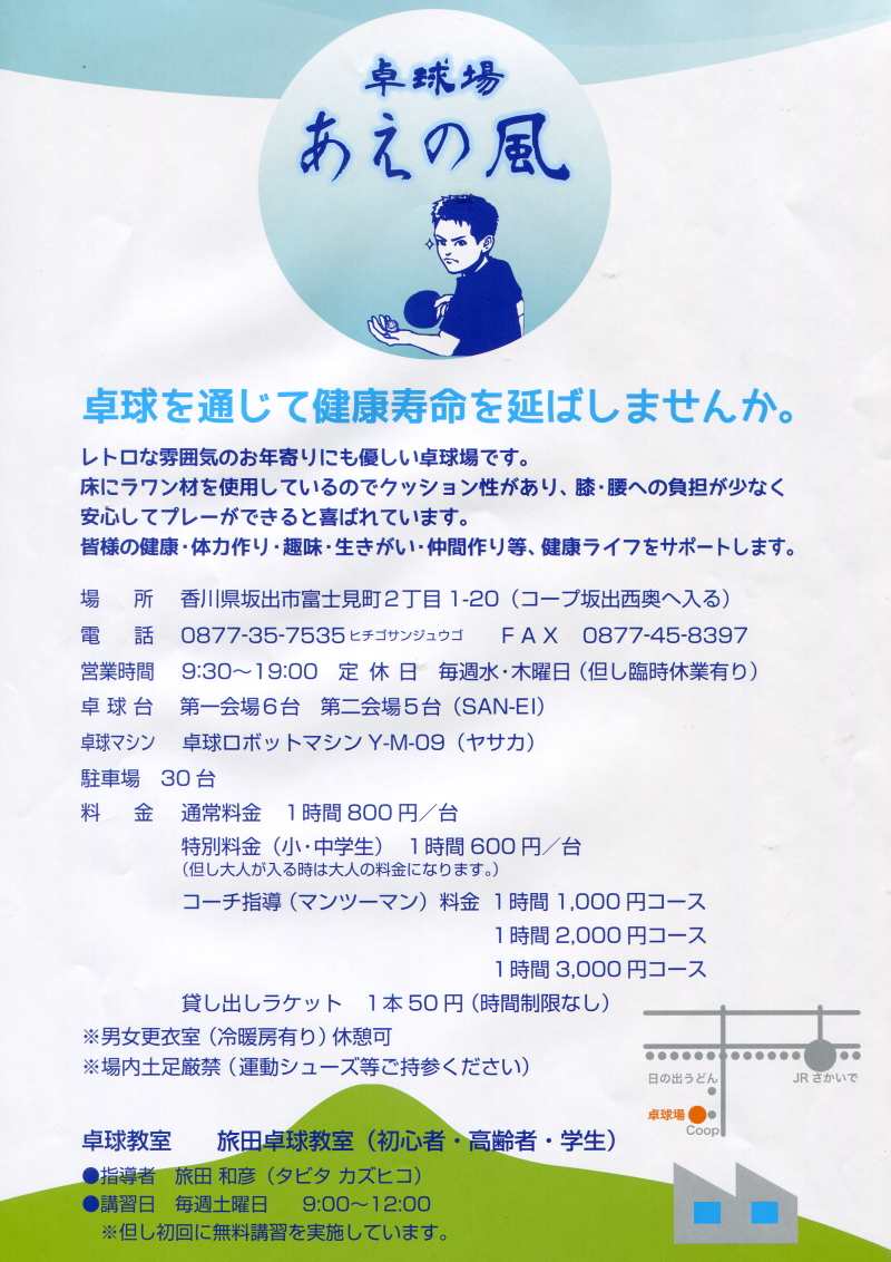 練習場所名 卓球場 「あえの風」 あえの風について詳しく知りたいクリック